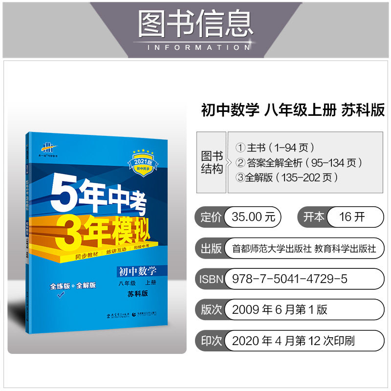 21新版五年中考三年模擬初中數學八年級上冊蘇科版sk 中學參考書初二蘇教版同步訓練習冊8年級江蘇資料輔導書5年中考3年模擬曲一線